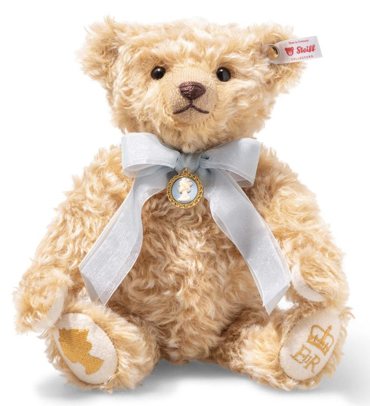 Steiff's exquisite musical teddy bear "Long To Reign Over Us" commemorates the landmark milestone of Queen Elizabeth II becoming the longest reigning British Monarch, surpassing the record of longevity of reign originally held by her Great-Great-Grandmother; Queen Victoria. "Long to Reign Over Us" has been crafted from the finest winter...