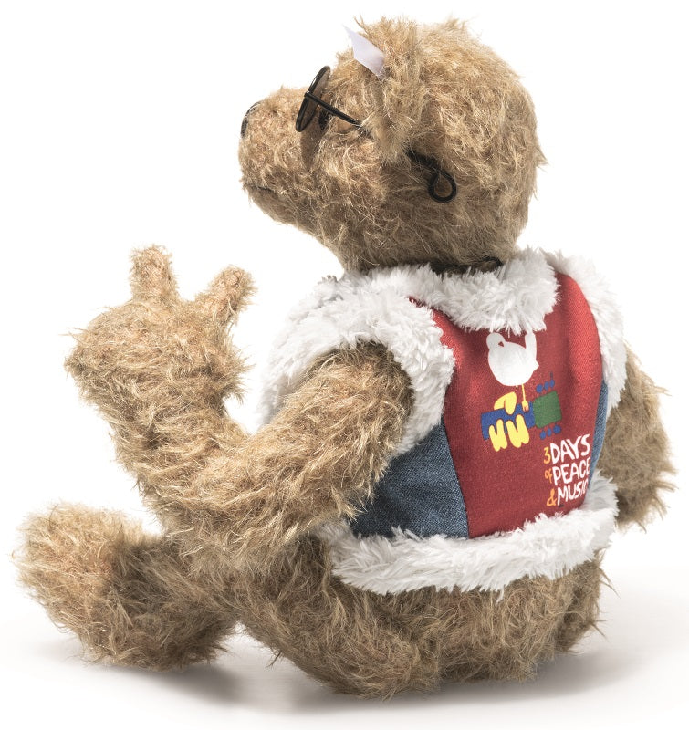 This bold David Bowie Steiff Rocks! bear, based upon his famous alter ego Ziggy Stardust, has been crafted from the finest white mohair fabric with a flash of flame red hair. He features a shiny gold disc detail on his head, golden hand stitched nose and mouth and two differed coloured...