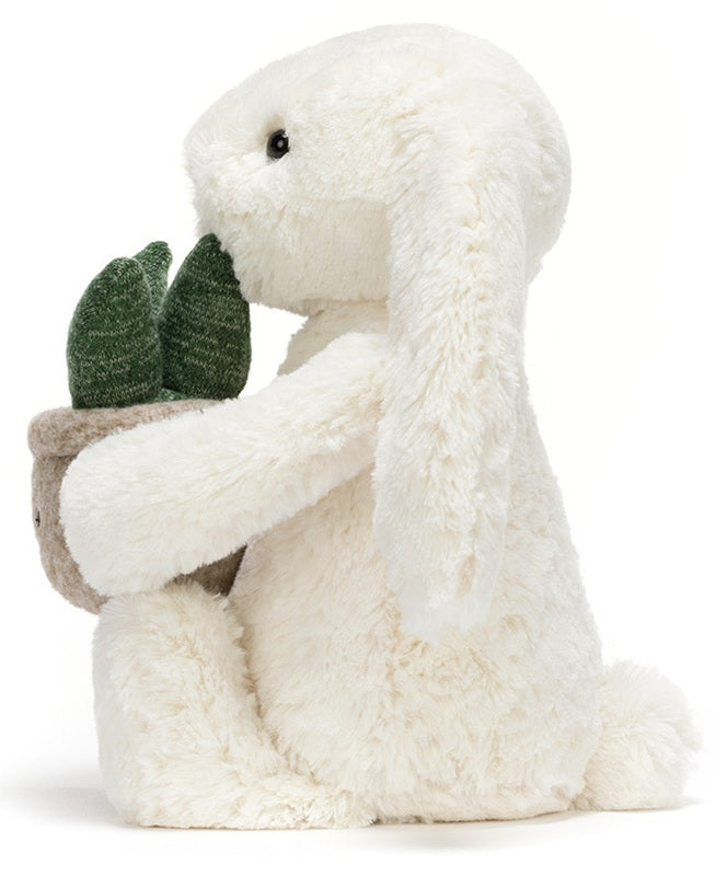 Jellycat's bashful bunny is made from soft white plush fabric, features a pretty pink nose and is part pellet filled, so will sit nicely. They carry their very own tiny, succulent plant, with smiley face, to add cheer to any home! Size: 31cm / 12.5 inches Unjointed Age: 0+ Hand...