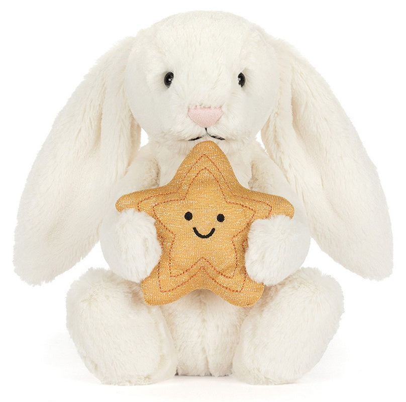 Jellycat's bashful bunny is made from soft white plush fabric, features a pretty pink nose and is part pellet filled, so will sit nicely. They carry their very own tiny star, with smiley face, to add cheer to any home! Size: 31cm / 12.5 inches Unjointed Age: 0+ Hand wash...