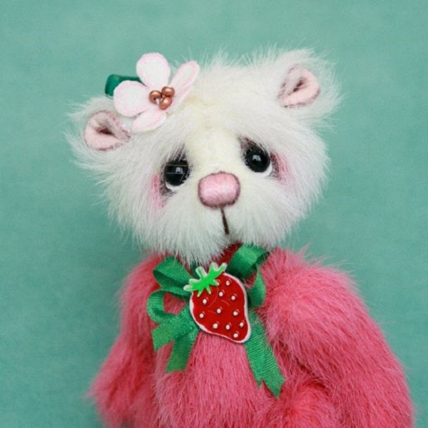 Strawberry Jam is a wonderful bear made from gorgeous white and dark pink coloured long pile plush fabric. She has beautifully crafted suedette footpads with intricate stitching detail, glass eyes and is part-filled with steel shot for a weighted feel. Strawberry Jam has an adorable hand embroidered pink nose, has...