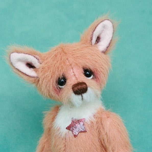 This fantastic Little Fox is crafted from soft rusty orange and white mini-plush fabrics which have been delicately airbrushed around the eyes and on the cheeks. He features endearing black glass eyes with defined eye whites, sculpted ears and shiny nose. Little Fox is firmly filled with sawdust, has pale...