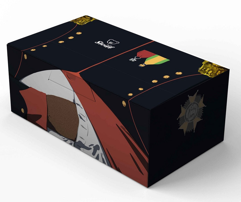 This striking bear is limited to only 1,769 pieces, which was the year of Napoleon's birth. He is exclusive to Europe, but is also available from us here at The Bear Garden! He comes with his numbered certificate in a special edition Steiff gift box with its original protective cardboard outer sleeve.
