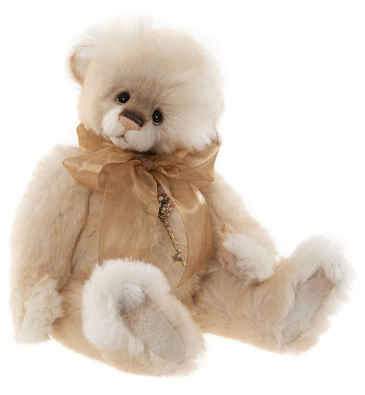 Mariah is part of The Isabelle Collection from Charlie Bears. She's a gorgeous bear made from beautifully soft dusky rose alpaca with a white mohair muzzle. She has a wonderful hand-stitched nose, eye whites and gentle airbrushed features which add to her charm! Mariah wears a beige knitted bow with pastel...